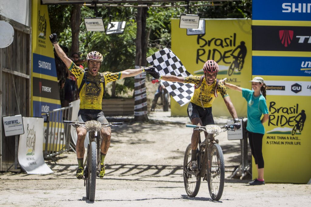 Melhores homens das Américas - Após pintarem como surpresa no prólogo, Mario Antonio Verissimo e Kennedi Sampaio conseguiram garantir, neste sábado, o título inédito da disputa da camisa branca da Brasil Ride, a dos melhores ciclistas das Américas. A diferença, que era de mais de oito minutos, caiu para menos de dois minutos, mas não o suficiente para José Gabriel Marques e Daniel Carneiro tirarem o troféu de Mario e Kennedi. "Sensação incrível. O Mario e eu somos principiantes e lutamos todos os dias, no limite, para segurar essa camisa. Conseguimos e saímos como título", destacou Kennedi. "Para nós foi mais que uma conquista, porque é nossa primeira vez em uma das ultramaratonas mais duras do mundo. O objetivo era apenas terminar e fomos campeões, apesar do pneu furar e ter feito os últimos dois quilômetros no aro", explicou Mario Antônio.