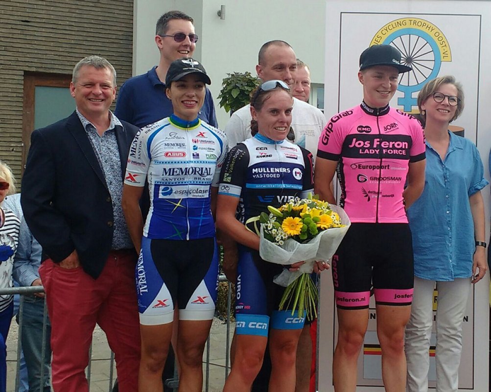 Depois de um excelente resultado no sábado, quando venceu e protagonizou uma dobradinha no GP Zuma, com as ciclistas Ana Paula Polegatch e Camila Coelho, a equipe feminina brasileira da Memorial/Santos, voltou a subir no pódio nesta segunda-feira (21/05), durante o GP Wiergala De Pinte, também na Bélgica.