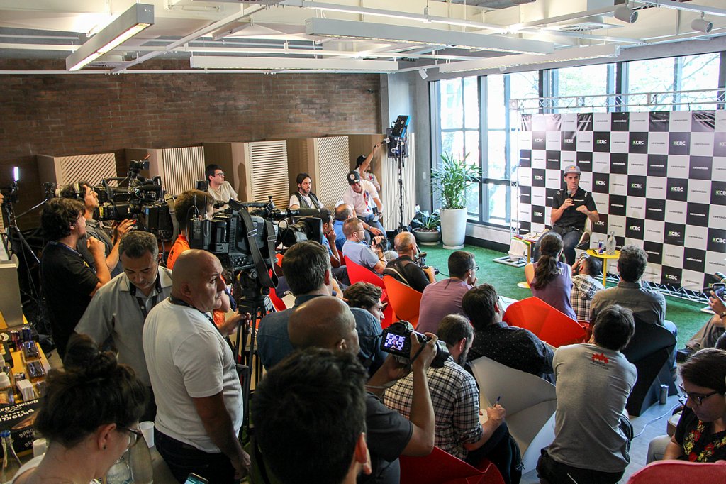 Após conquistar mundial, Avancini recebe jornalistas em coletiva cheia em São Paulo