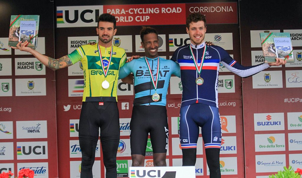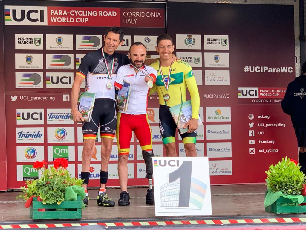 O Brasil terminou como um dos destaques da primeira etapa da Copa do Mundo de Paraciclismo, na Itália. Neste domingo, 12 de maio, a seleção conquistou três medalhas na prova de resistência. Lauro Chaman foi prata na categoria MC5 e com isso garantiu a liderança geral da competição, que este ano ainda irá passar pela Bélgica e Canadá.