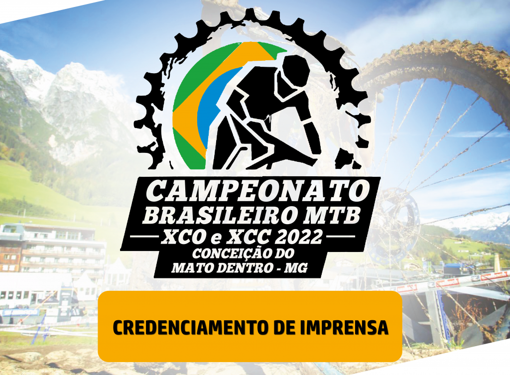 Informamos que está aberto, até o dia 7 de outubro, o credenciamento de imprensa para o Campeonato Brasileiro de Mountain Bike XCO e XCC 2022, evento que acontece entre os dias 7 e 9 de outubro, na cidade de Conceição do Mato Dentro, no estado de Minas Gerais.