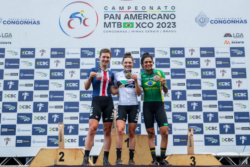 Uma disputa de gigantes! Esse certamente foi o resumo das provas de Elite do Campeonato Pan-Americano de Mountain Bike 2023, disputado na cidade de Congonhas (MG) e encerrado neste domingo (30). Os protagonistas desse filme foram a norte-americana Kate Courtney e o mexicano José Gerardo Ulloa, que já haviam vencido a disputa do XCC na sexta-feira, e mostraram mais uma vez um pedal avassalador para faturarem mais uma medalha de ouro, agora no XCO.