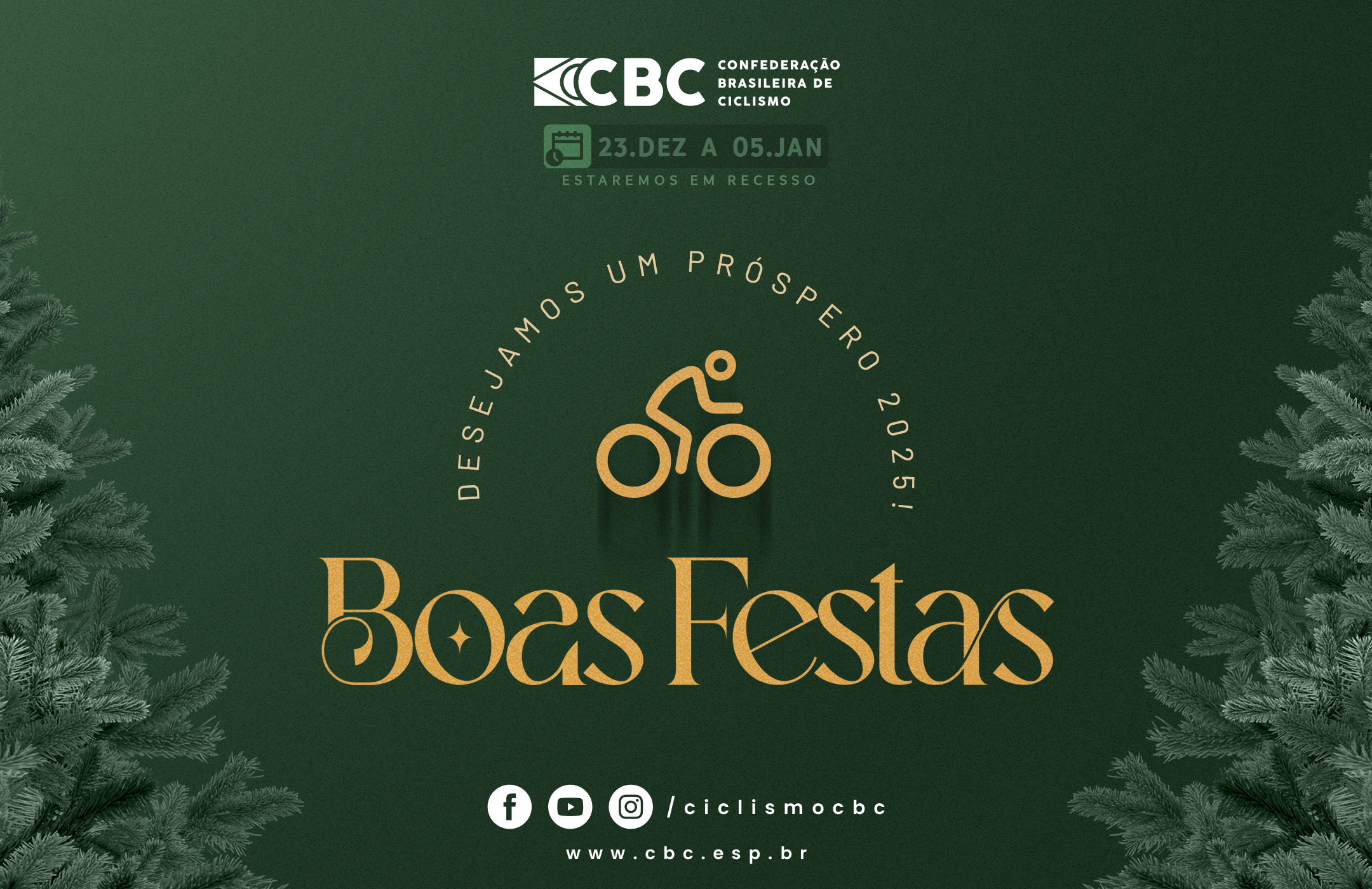 A Confederação Brasileira de Ciclismo (CBC) informa que, devido às festividades de final de ano, entrará em recesso coletivo a partir do dia 23 de dezembro de 2024, retornando às suas atividades normais no dia 6 de janeiro de 2025.