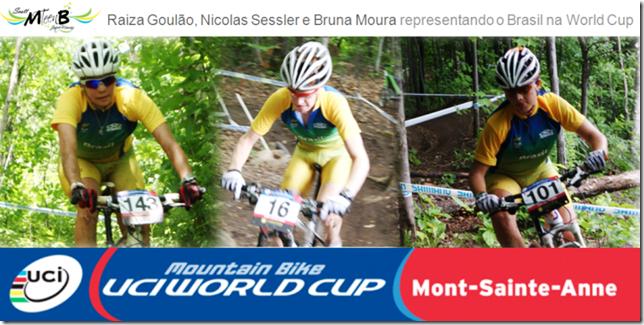 Os brasileiros Raíza Goulão Henrique, Bruna Rafaela de Moura e Nícolas Sessler participaram, no Canadá, da quarta etapa da Copa do Mundo de Mountain Bike (XCO), disputada em Mont Sainte-Anne, Quebec.A primeira largada foi de Raiza Goulão Henrique, da categoria Sub23, no Sábado, dia 02 de julho, às 11:45 da manhã. As atletas desta categoria largaram 2 minutos após a categoria elite feminino e percorreram 4 voltas em um circuito de 4,5km de extensão. A vencedora Sub23 foi a francesa Pauline Prevot, bi-campeã Mundial, que venceu a prova de ponta a ponta, alcançando até mesmo uma grande parte das atletas da elite feminino. Raiza terminou a prova na 15a colocação e somou 12 pontos no ranking mundial. “Raiza fez uma excelente prova considerando que este é somente o segundo ano da atleta neste esporte e ela conseguiu ter um aproveitamento muito bom, terminando na mesma volta da líder e superando atletas do time nacional canadense”, diz Jaqueline Mourão, responsável pelo projeto de desenvolvimento MTeenB.No domingo, dia 03 de julho, Nícolas Sessler e Bruna Moura largaram na categoria júnior, às 09:30 da manhã. Nícolas largou muito bem e já assumiu a frente do pelotão revezando com o atleta da Eslováquia Frantisek Lami. A categoria júnior contou com atletas de ponta do cenário mundial e foi uma ótima oportunidade para o jovem atleta brasileiro se comparar com os tops mundiais. Nicolas Sessler terminou na 12a colocação. Jaqueline Mourão afirma que “Nícolas este ano chegou no Canadá mais cedo para se preparar para as Copas do Mundo e esta em excelente forma, nós vamos trabalhar alguns detalhes de tática de prova e acredito que na próxima etapa da Copa do Mundo no fim de semana que vem ele poderá melhorar ainda mais seu resultado”.Bruna Moura largou na júnior feminino, logo após a categoria júnior masculino, e terminou na 7a posição, somando 16 pontos no ranking mundial. Jaque comenta que para Bruna esta experiência foi muito válida, pois conseguiu pedalar em um circuito muito técnico e ainda teve a oportunidade de fazer uma prova com formato de duração mais aproximado para a sua idade. “Bruna esta somente começando e tecnicamente teve uma melhora excepcional se compararmos sua evolução desde o estágio do ano passado”, finaliza Jaqueline Mourão.Os jovens atletas irão focar os treinamentos para a próxima etapa da Copa do Mundo que será realizada na cidade de Windham, nos EUA, no dia 09 de julho.