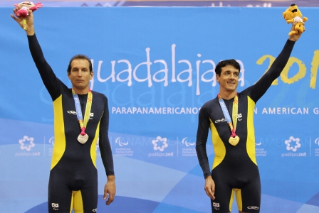 Pódio verde e amarelo em Guadalajara. Crédito: Marcio Rodrigues (Fotocom.net)Os paraciclistas João Schwindt e Soelito Gohr protagonizaram uma dobradinha para o Brasil na prova de perseguição individual disputada nesta quarta-feira (16), marcando o último dia de competições no velódromo Parapan-Americano.