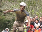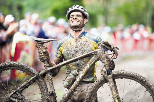 Henrique Avancini sofreu um acidente no decorrer do percurso e acabou empurrando sua bike até a linha de chegada, com fortes dores no peito e cortes no rosto.