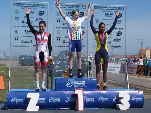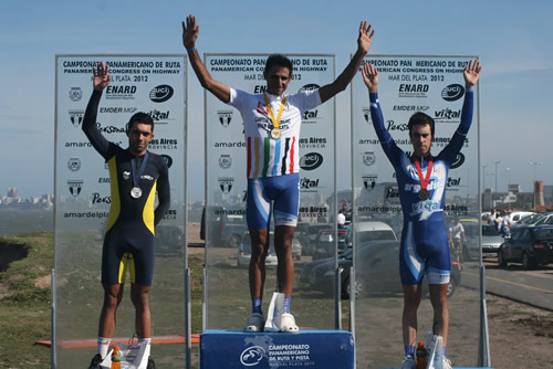 Pódio da elite masculinaCrédito: Adolfo CarrizoApós conquistar três medalhas nas provas de velocidade realizadas no velódromo internacional “Julio Polet”, o Brasil subiu outras duas vezes ao pódio nesta sexta-feira (09), durante as provas de contra-relógio do Campeonato Pan-Americano de Pista e Estrada, disputado em Mar del Plata, na Argentina. Na categoria elite masculina, Magno Prado conquistou a prata, com 50min11s550, enquanto Clemilda Fernandes foi bronze na elite feminina, com o tempo de 27min57s00.