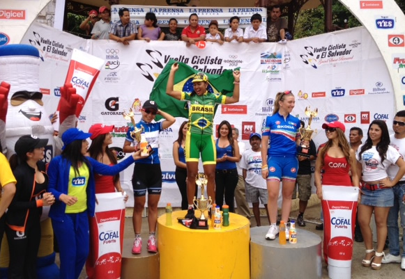 Clemilda Fernandes no pódio Crédito: CBC/DivulgaçãoDepois de conquistar a sétima colocação na sexta e última etapa, a brasileira Clemilda Fernandes se consagrou campeã da Vuelta a El Salvador. A vitória deixou o país mais próximo das Olimpíadas de Londres em 2012.