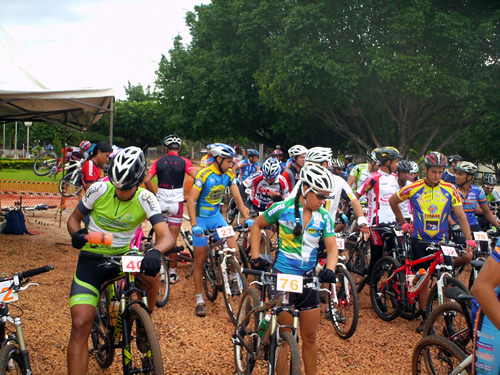 Ciclistas se preparam para largarCrédito: FMTC/Rina SilvaOs atletas Mário Antonio e Jane de Jesus foram os destaques do 1º GP Vale do Araguaia de Mountain Bike. Os dois ciclistas foram os vencedores da categoria Elite, e com a vitória somaram 30 pontos no ranking brasileiro da disciplina.