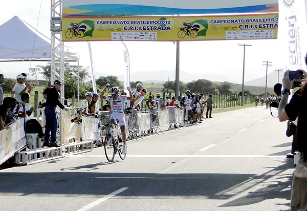 Chegada da elite masculina com vitória de Otávio BulgarelliCrédito: CBC/DivulgaçãoOs ciclistas Otávio Bulgarelli e Luciene Ferreira, ambos da equipe paulista Funvic/Pindamonhangaba, foram os vencedores do Campeonato Brasileiro Elite de Estrada 2012, realizado nesse domingo, 24 de junho, em Rio das Ostras, no Rio de Janeiro.