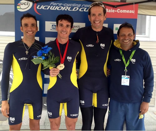 Delegação comemora resultadosCrédito: CBC/DivulgaçãoA seleção brasileira de Para-ciclismo formada por João Schwindt, Soelito Gohr e Jefferson Spimpolo, esta reunida em Baie-Comeau, no Canadá, onde disputam a terceira etapa da Copa do Mundo, entre os dias 06 e 08 de julho. O atleta João Schwindt foi um dos destaques do primeiro dia, após conquistar o ouro na categoria C5.