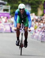 Atleta brasileiro larga com uniforme adaptado na prova de Contra relógio individual