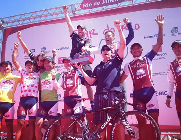 Equipe Padaria Real domina Tour do RioCrédito: DivulgaçãoNão deu para ninguém. Duas vezes terceiro colocado e vencedor da terceira etapa, Kleber Ramos (Real Cycling Team) manteve a tática que o fez dono da camisa amarela no trecho Rio das Ostras-Rio de Janeiro, terminou a etapa em 7º e se sagrou o primeiro brasileiro a vencer o Tour do Rio. O sprintista se manteve quase todo o tempo atrás do pelotão, junto com os companheiros de equipe, ignorando as fugas. Ditando o ritmo da prova, eles compactaram o pelotão já na Ponte Rio-Niterói e desceram, com Kleber à frente, no sprint final na Quinta da Boa Vista, para serem recebidos com festa por milhares de pessoas. Roberto Pinheiro, da Funvic/Pindamonhangaba, foi o vencedor do trecho, seguido de Edgardo Simon (Real) e Ricardo Ortis (São Francisco), num pódio também inédito com três brasileiros. Foi a melhor participação brasileira na história da competição.A cada pedalada rumo ao Rio de Janeiro, entre centenas de corredores, o atleta sentia o título mais próximo. Com a vantagem imposta pelo retrospecto, ele contou com os gregários para manter o ritmo do início ao fim. José Eriberto Rodrigues e até mesmo o montanhista Alex Diniz, dono final da camisa de bolinhas vermelhas, voltaram da cabeça do pelotão para pegar bebidas no carro e abastecer o futuro campeão. A equipe, aliás, se consagrou a grande vencedora da competição, levando também a o título por equipes e a camisa verde, que ficou com Edgardo Simon.Quase como uma cópia do trecho Teresópolis-Rio das Ostras, a liderança começou em outras mãos que não as dele. A exemplo do que fez na etapa anterior, Murilo Affonso (Clube DataRO) atacou e conseguiu manter a liderança na primeira metade da prova. Só que desta vez sem enfrentar montanhas e com a companhia de Cristian Rosa (São Francisco Saúde/Ribeirão Preto), Ramon Juarez Garrido (KTM-Murcia) e Renato Ruiz (Velo/Seme Rio Claro). Sem subidas para temer os colombianos, o grupo da fuga tinha como principal preocupação a liderança do pelotão nas mãos da Real Cycling Team, que aguardava o momento certo para atacar.A diferença que chegou a alcançar três minutos se reduziu a um pouco à frente de Rio Bonito. Próximo à chegada na Ponte Rio-Niterói, Renato Santos (DataRO), Joseph Rosskopf (Team Type 1) e Renan Maia (GRCE Memorial/Prefeitura Santos) substituiram o trio na liderança. Faltavam pouco mais de 30km do fim. Ninguém, no entanto, conseguiu impor uma diferença significativa.A cada pedalada rumo ao Rio de Janeiro, com Kleber Ramos no meio do pelotão, o atleta da Real Cycling Team se aproximava do título. Quando a última fuga na Ponte foi neutralizada não restavam mais dúvidas. Para fazer história, o atleta da equipe de Sorocaba cruzou o pórtico de chegada e se sagrou o campeão.