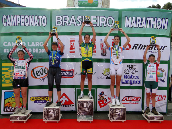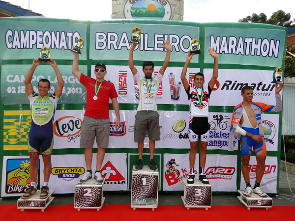Pódio da elite masculinaCrédito: CBC/DivulgaçãoO ciclista Gilberto Goes, 32 anos, que compete pela equipe Trust, e Roberta Stopa, Damatta/Mob/Ashima/Xfusion, foram os campeões brasileiros de Mountain Bike Marathon, disputado neste domingo (2), em Campo Largo (PR). A prova reuniu 380 atletas, distribuídos em onze categorias que conheceram os seus campeões de 2012.
