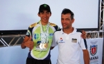 Bruno Galvão ao lado do seu técnico "Carlão"Crédito: DivulgaçãoFinalizando as competições do ciclismo nas Olimpíadas Escolares, foi disputada no domingo, 9 de setembro, as provas de estrada. O primeiro colocado no masculino foi o paranaense Bruno Galvão (Col. Santa Maria Goretti), seguido por Gabriel Lara (Colégio Anhanguera) e Kelvin Mendes (EE Luciene Espirito Santo), segundo e terceiro colocados, respectivamente. No feminino, novamente brilhou a estrela da paraibana Isabela Dourado (Virginius da Gama e Melo), conquistando a sua segunda medalha de ouro na competição. Na segunda colocação, com a prata, terminou Jenifer Kolben (CE Souza Naves), seguida de Beatriz Pinto (CE Unidade Polo), com o bronze.