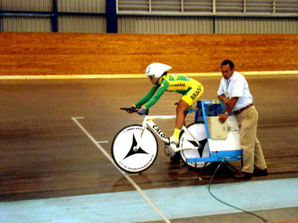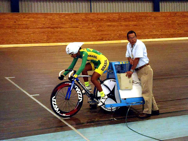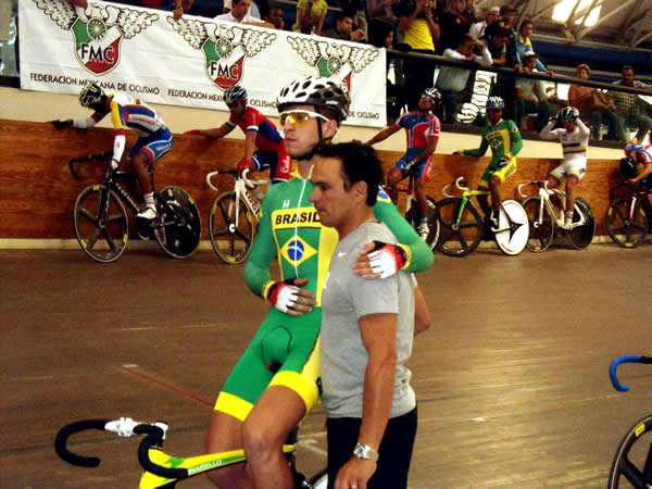 Thiago Nardin e o técnico Emerson SilvaCrédito: CBC/DivulgaçãoOs jovens atletas escalados para disputarem o Campeonato Pan-Americano de Ciclismo de Pista Elite no México, entre os dias 6 e 10 de fevereiro, estão demonstrando grande desempenho. Com uma equipe renovada e jovem, média de 20 anos de idade, a seleção vem conseguindo uma ótima evolução nos resultados, quebrando recordes nacionais e muito perto de conquistar sua primeira medalha na competição.