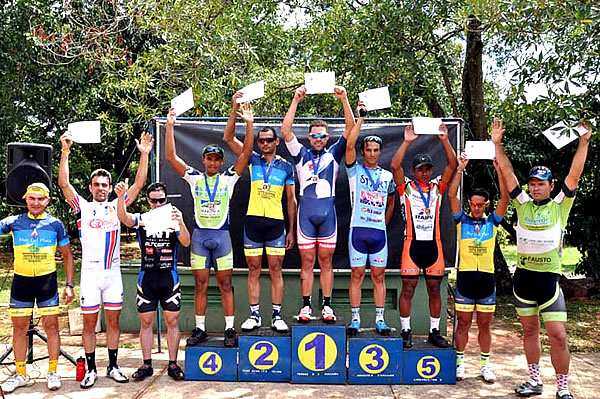 Categoria elite no pódioCrédito: FMSC/DivulgaçãoO ciclista paulista Felippe dos Santos garantiu a vitória no 4º GP Mega 94 de Ciclismo, realizado neste domingo (10), em Campo Grande, no Mato Grosso do Sul. A competição distribuiu 40 pontos para o ranking nacional e reuniu cerca de 200 atletas de vários estados do Brasil, além de contar também com a presença de atletas do Paraguai.