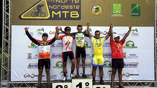 Largada na Copa NordesteCrédito: FCP/DivulgaçãoA Copa Nordeste de Mountain Bike 2013 foi realizada neste domingo (17) no estado do Piauí. O percurso foi montado exclusivamente para o evento que reuniu mais de 120 pilotos na Zona Rural da capital Teresina. Os campeões da categoria Elite foram os cearenses Diego de Almeida e Joana Eleonora Nóbrega. Os primeiros colocados de cada categoria também somaram pontos no ranking brasileiro de Mountain Bike.- A prova superou as nossas expectativas. Essa é a primeira vez na história que o estado do Piauí realizou uma Copa Nordeste de MTB. Apesar da grande responsabilidade de estarmos coroando os melhores do nordeste na disciplina do Mountain Bike, acabou tudo dando certo e estamos muito satisfeitos com os resultados e também com o nível dos atletas piauienses – declarou George Rodrigues, presidente da Federação de Ciclismo do Piauí (FCP).Pela primeira vez na história do ciclismo brasileiro a Copa Nordeste de Mountain Bike foi realizada no estado do Piauí. Nesta competição os atletas deixam as rivalidades regionais de lado e formam equipes de peso, representando suas respectivas seleções estaduais. Cada um dos nove estados do Nordeste participou representado pela sua delegação. A competição foi dividida em diversas categorias, com disputas de aproximadamente duas horas de duração.