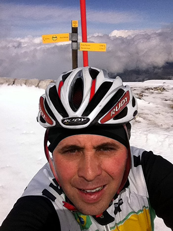 “Durante a escalada, sentia muito frio e recebia vento no sentido contra a todo o momento. Isso dava uma sensação de estar subindo uma montanha com 20% de inclinação. Mesmo com todas as dificuldades, nunca pensei em desistir. O meu objetivo era conseguir chegar ao topo e ter a vista de toda a montanha recheada de muita neve. Chegando ao Ventoux, consegui enxergar o motivo de tantos comentários sobre seus atributos. A impressão é de estarmos pedalando sobre curvas infinitas que parecem segurar a bicicleta no asfalto. Eu literalmente estava nas nuvens. Após cerca de duas horas pedalando montanha acima, enfrentando todas as dificuldades e muito frio, consegui superar os obstáculos e realizei mais um grande desafio na minha vida. É uma sensação inexplicável” comentou o brasileiro.