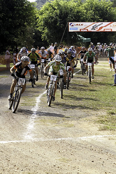 Largada da Copa ALECrédito: DivulgaçãoRaça, dedicação e técnica fizeram parte da segunda etapa da Copa ALE/LM BIKE Inconfidentes de MTB. A competição aconteceu neste domingo (16), no Pesque e Pague Campestre, em Itabirito (MG). No formato XCO, a prova reuniu cerca de 270 bikers de todo o país. O suíço Lucas Kaufmann (Focus/Oce Traning Team) venceu com folga e garantiu o primeiro lugar do pódio. Já Raíza Goulão (Soul Moovi Taschibra/ Ortholine Honey Stinger), da cidade de Pirenópolis, foi a grande campeã da categoria Elite Feminino.