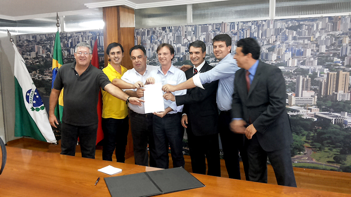 Cerimônia de assinaturaCrédito: CBC/DivulgaçãoEm solenidade nesta quinta-feira, 28 de novembro, os diretores da Confederação Brasileira de Ciclismo (CBC) e da Caixa Econômica Federal assinaram, em conjunto com a Prefeitura de Londrina, representada pelo seu prefeito Alexandre Kireeff e o deputado federal André Vargas (PT), um contrato que visa acelerar a construção do Centro de Treinamento para a disciplina de Ciclismo BMX em Londrina, no Paraná.