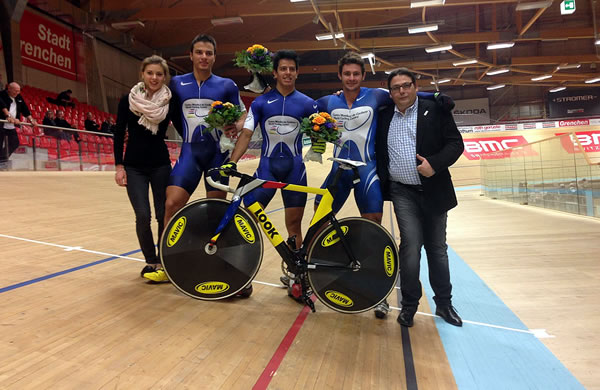 Equipe brasileiraCrédito: CBC/DivulgaçãoA preparação para os Jogos Sul-Americanos, em Março, segue a todo vapor para os atletas da seleção de ciclismo de pista. Nesta quinta, 6 de fevereiro, os ciclistas participaram de uma competição com provas por equipes no Velódromo de Grenchen, dentro da sede da Federação Suíça de Ciclismo.Os brasileiros disputaram a prova de Velocidade Por Equipe - que compreende na formação de uma equipe composta por três atletas em busca de estabelecer o menor tempo durante três voltas – saindo vencedores da prova e de quebra estabelecendo ainda o novo recorde brasileiro para esta prova do ciclismo de pista.No inicio da competição, foi anunciado pelos organizadores à platéia, que a equipe brasileira estaria tentando quebrar o recorde nacional, provocando bastante euforia no público presente, tornando a prova no momento mais aguardado da noite. Ainda pela tomada de tempo, durante a fase de classificação, os brasileiros já chegaram bem perto do recorde brasileiro, mas foi durante a grande final que o trio verde e amarelo estabeleceu o tempo de 45s305, abaixando em 547 centésimos o antigo recorde brasileiro de 45s852 e se consagrando vencedores da competição.A seleção brasileira participou da prova com uma equipe formada por Flávio Cipriano, um dos principais destaques do ciclismo brasileiro de Pista na atualidade, que dividiu a responsabilidade com os jovens Diefferson Borges e Kacio Freitas, ambos também tem conquistado resultados muito expressivos durante o intercambio do grupo na Suíça.“Os atletas estão com uma harmonia muito grande. Em provas por equipes isso é fundamental para um bom resultado. Conseguimos quebrar o recorde brasileiro e os trabalhos de preparação para os Jogos Sul-Americanos, que são a nossa próxima meta, estão muito bem encaminhados” avaliou Emerson Silva, técnico da Seleção Brasileira de Ciclismo de Pista.
