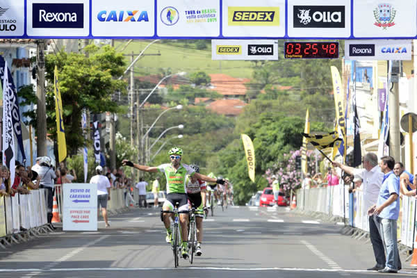 Magno vence etapaCrédito: Sérgio Shibuya/MbragaA Funvic/BrasilInvest/São José dos Campos segue com aproveitamento de 100% no 10º Tour do Brasil/Volta Ciclística do Estado de São Paulo. Nesta terça-feira, o time brasileiro, atual campeão do evento, completou a terceira vitória em três etapas disputadas, mostrando porque é uma das melhores equipes da América do Sul. E a conquista no trecho entre Botucatu e Brotas, com 146,1 km, veio com nada menos que Magno Nazaret, capitão da equipe e o vencedor da última edição no individual. O atleta completou a etapa com o tempo de 3h24min09seg607, seguido pelos colombianos Oscar Sevilla, da EPM/Une Ciclismo (COL), com 3h24min09seg892, e Juan Sebastian Martinez, também da Funvic, com 3h24min10seg253. Na classificação geral individual, após as três etapas, os três primeiros lugares são do representantes de São José dos Campos: Juan Sebastian lidera com 8h56min17seg, Alex Diniz aparece em segundo, com 8h56min23seg, e Magno em terceiro, também com 8h56min23seg. Alex Diniz ainda está na frente na classificação de Pontos, com 28, enquanto João Gasoar, da Ironage/Colner/BRA é o melhor no Prêmio de Montanha até o momento. Na briga das equipes, a Funvic segue na ponta, com 26h49min48seg, vindo em seguida a EPM/Une Ciclismo/Colômbia, 26h57min19seg, e o Clube Dataro de Ciclismo/Bottecchia, de Foz do Iguaçu, com 26h58min56seg. Os ciclistas deixam as provas de estrada por um dia. O quarto desafio será em Brotas mesmo, com uma prova de contrarrelógio individual, com 28,5 km, com largada e chegada na Avenida Dante Martinelli, próximo do Portal de Bitucatu. As saídas, como o nome da prova diz, são invidividuais, sendo que o primeiro ciclista começa sua prova às 7h. A terceira etapa partiu de Botucatu com destino a Brotas, totalizando 146,1 km de distância oficial de competição. A caravana passou por estradas de pista única, sinuosas e sem acostamento, mas com o asfalto ótimo, o que possibilitou um ritmo forte por quase toda a manhã. Logo no começo um grupo de ciclistas escapou e abriu um bom tempo para o segundo pelotão. Mas essa vantagem foi neutralizada na cidade de São Pedro, quando todos os ciclistas formaram um único pelotão e partiram para a temida subida da serra, com um grau acentuado de inclinação. Muito sentiram a dificuldade e logo a prova se dividiu em três pelotões. A trecho final da corrida aconteceu em duas estradas de pistas largas, onde os competidores puderam desenvolver grandes velocidades até a cidade de Brotas. Magno, Oscar e Juan disputaram o sprint final, com vitória do brasileiro, a primeira na comeptição. "Foi muito importante ganhar aqui. Uma volta se ganha aos poucos e tudo esta caminhando bem. A prova de contrarrelogio é minha especialidade e espero conseguir um bom resultado e chegar à camisa amarela de líder", destacou o vencedor e atual campeão do Tour do Brasil. Por falar em liderança, ela está em poder de outro ciclista da Funvic: o colombiano Juan Martinez. "Sem dúvida é muito bom. Chegar em terceiro e conseguir ainda estar na frente é perfeito. Agora é seguir trabalhando forte e buscar que algum integrante da equipe chegue para a etapa final, em Sao Paulo, como líder", declarou o atleta. Resultados 3ª etapa - Botucatu/Brotas - 146,1 km 1) Magno Nazaret (Funvic Brasilinvest/São José dos Campos/BRA), 03h24'09'' 2) Oscar Miguel Sevilla (EPM/Une Ciclismo/Colômbia), 03h24'09'' 3) Juan Sebastian Martinez (Funvic Brasilinvest/São José dos Campos/BRA), 03h24'09'' 4) Alex Diniz Correia (Funvic Brasilinvest/São José dos Campos/BRA), 03h24'15'' 5) João Gaspar * (Ironage/Colner/BRA), 03h24'21'' 6) Willian Chiarello (São Lucas/Giant/Bontranger/Americana/BRA), 03h24'23'' 7) Oscar Eduardo Sanches Guarin (Funvic Brasilinvest/São José dos Campos/BRA), 03h24'26'' 8) Alan Maniezo (São Lucas/Giant/Bontranger/Americana/BRA), 03h24'26'' 9) Kleber Ramos da Silva (Funvic Brasilinvest/São José dos Campos/BRA), 03h24'29'' 10) Cristian Egidio da Rosa (Clube Dataro de Ciclismo/Bottecchia/BRA), 03h24'34'' Classificação Geral Individual após duas etapas 1) Juan Sebastian Martinez (Funvic Brasilinvest/São José dos Campos/BRA), 08h56'17'' 2) Alex Diniz Correia (Funvic Brasilinvest/São José dos Campos/BRA), 08h56'23'' 3) Magno Nazaret (Funvic Brasilinvest/São José dos Campos/BRA), 08h56'23'' 4) Willian Chiarello (São Lucas/Giant/Bontranger/Americana/BRA), 08h56'44'' 5) Oscar Miguel Sevilla (EPM/Une Ciclismo/Colômbia), 08h57'13'' 6) João Gaspar * (Ironage/Colner/BRA), 08h57'37'' 7) Oscar Eduardo Sanches Guarin (Funvic Brasilinvest/São José dos Campos/BRA), 08h58'02'' 8) Flávio Cardoso (Funvic Brasilinvest/São José dos Campos/BRA), 08h58'59'' 9) Patrick Facchini (Androni Giocattoli/ITA), 08h59'02'' 10) Diego Ochoa * (4-72 Colômbia), 08h59'02'' Classificação Geral de Montanha 1) João Gaspar (Ironage/Colner/BRA), 16 2) Oscar Eduardo Sanches Guarin (Funvic Brasilinvest/São José dos Campos/BRA), 12 3) Cristian Egidio da Rosa (Clube Dataro de Ciclismo/Bottecchia/BRA), 5 Classificação Geral por Pontos 1) Alex Diniz Correia (Funvic Brasilinvest/São José dos Campos/BRA), 28 2) Juan Sebastian Martinez (Funvic Brasilinvest/São José dos Campos/BRA), 20 3) Flávio Cardoso Santos (Funvic Brasilinvest/São José dos Campos/BRA), 18 Classificação Geral por equipes após duas etapas 1) Funvic Brasilinvest/São José dos Campos/BRA), 26h49'48'' 2) EPM/Une Ciclismo/Colômbia), 26h57'19'' 3) Clube Dataro de Ciclismo/Bottecchia/BRA), 26h58'56'' 4) OFM/Quinta da Lixa/POR), 26h59'06'' 5) São Lucas/Giant/Bontranger/Americana/BRA), 27h04'54'' 6) 4-72 Colômbia), 27h06'38'' 7) Androni Giocattoli/ITA), 27h07'15'' 8) Ironage/Colner(BRA), 27h09'17'' 9) São Francisco Saúde/Açúcar Caravelas/Gold Meat/SME/BRA), 27h10'38'' 10 Brasilinvest/Suzano/Eqmax/BRA), 27h18'12''