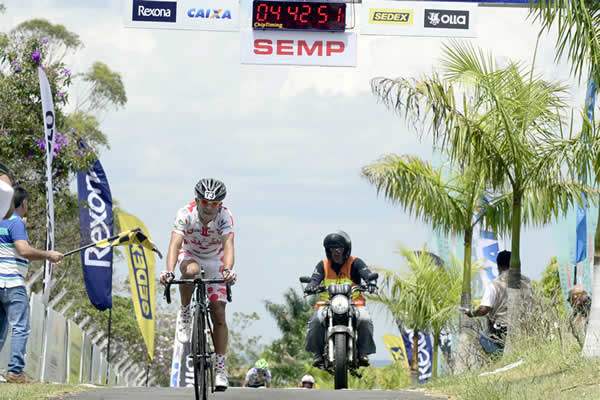 Chegada da quinta etapaCrédito: Sérgio Shibuya/MbragaA rotina do 10º Tour do Brasil/Volta Ciclística do Estado de São Paulo foi finalmente quebrada nesta quinta-feira. Depois de quatro vitórias consecutivas, a equipe Funvic/BrasilInvest/São José dos Campos não conquistou o topo do pódio da quinta etapa, entre Brotas e Águas de Lindoia. O responsável por isso foi o jovem João Gaspar, de apenas 21 anos, conhecido como Canibal, vencedor do trecho mais longo, com 191,6 km, e mais duro terminando em uma subida forte a 1117 metros. Ele marcou 4h41min10seg851, garantindo a equipe Ironage/Colner, de São Paulo no lugar mais alto do pódio. A segunda colocação foi de Alex Diniz Correia, o Meio Quilo, da Funvic, com 4h41min24seg466, enquanto a terceira ficou com Kleber Ramos, seu companheiro de equipe, com 4h41min44seg383. O líder Magno Nazaret, da Funvic/BrasilInvest/São José dos Campos terminou a etapa em quarto, resultado que lhe assegurou a permanência na ponta da classificação individual do 10º Tour do Brasil Volta Ciclística de São Paulo. Agora, ele soma 14h09min04seg, seguido por Alex Correia, 14h10min29seg, e João Gaspar, 14h11min31seg. No Prêmio de Montanha, a liderança é de João Gaspar, com 25 pontos, e por Pontos de Alex Diniz, com 35. Na classificação de equipes, a Funvic segue em primeiro, com 42h30min58seg, vindo em segundo a EPM/Une Ciclismo/Colômbia, 42h47mun48seg, e em terceiro o Clube Dataro de Ciclismo (BRA), 42h49min09seg. A quinta etapa, como era previsto, exigiu bastante dos participantes. Além da distância, por si só já desgastante com este clima quente, o final reservava uma subida de respeito, bem puxada. Com isso, os principais destaques da prova até o momento acabaram se guardando para o desafio final. Neste contexto, o jovem João Gaspar acabou levando a melhor e impendido uma nova vitória dos atletas de São José dos Campos. Quem também apostou na vitória de João Gaspar foi o ex-ciclista Cássio de Paiva, campeão da Volta de Portugal, e que prestigiu a quinta etapa. "O que ajudou muito no dia foi a fuga antes do meio da prova, que deixou a corrida mais tranquila para mim. A equipe me protegeu ao longo do percurso e poupei energia para a parte final da prova. Assim consegui chegar descansado para os últimos 10 quilômetros", declarou o vencedor. "A subida final foi muito difícil e duríssima, mas como sou especialista em montanha tenho mais facilidade para enfrentar longos aclives. Com essa vitória continuo com a camisa da Sub 23 e ganhei a de montanha", finalizou. Para o líder Magno Nazaret, o momento é de pensar dia a dia. "Estão brigando pelas vitórias os mesmos que estão na ponta. Eu corri me defendendendo e vou assim até quando der, pois estamos controlando", explicou. Com relação a etapa, ele destacou a dificuldade."Foi um trecho duro, sem falar do clima e desta chegada muito forte. Valeu pelo desafio", finalizou. Sexta etapa A sexta etapa da competição apresenta o segundo maior percurso. Desta vez serão 161,4 km entre Águas de Lindoia e Atibaia, com largada às 7h, na Praça Adhemar de Barros, em Águas de Lindoia, e chegada prevista para as 12h20, na Igreja Matriz de Atibaia. 5ª etapa - Brotas/Águas de Lindoia - 191,6 km 1) João Gaspar (Ironage/Colner/BRA), 04h41'20'' 2) Alex Diniz Correia (Funvic Brasilinvest/São José dos Campos/BRA), 04h41'24'' 3) Kleber da Silva Ramos (Funvic Brasilinvest/São José dos Campos/BRA) 04h41'44'' 4) Magno Nazaret (Funvic Brasilinvest/São José dos Campos/BRA), 04h41'44'' 5) Oscar Miguel Sevilla (EPM/Une Ciclismo/Colômbia), 04h41'50'' 6) Willian Chiarello (São Lucas/Giant/Bontranger/Americana/BRA), 04h42'11'' 7) Oscar Sanches Guarin (Funvic Brasilinvest/São José dos Campos/BRA), 04h42'18'' 8) Alan Maniezo (São Lucas/Giant/Bontranger/Americana/BRA), 04h42'54'' 9) Edson Calderon (4-72 Colombia/COL), 04h42'56'' 10) Yondet Godoy (Androni Giocattoli/ITA) 04h43'02" Classificação Geral Individual após cinco etapas 1) Magno Nazaret (Funvic Brasilinvest/São José dos Campos/BRA), 14h09'04'' - 2) Alex Diniz Correia (Funvic Brasilinvest/São José dos Campos/BRA), 14h10'29'' 3) João Gaspar (Ironage/Colner/BRA), 14h11'31'' 4) Oscar Miguel Sevilla (EPM/Une Ciclismo/Colômbia), 14h11'36'' 5) Willian Chiarello (São Lucas/Giant/Bontranger/Americana/BRA), 14h12'59'' 6) Oscar Sanches Guarin (Funvic Brasilinvest/São José dos Campos/BRA), 14h14'09' 7) Rodrigo do Nascimento (São Francisco Saúde/Açúcar Caravelas/Gold Meat/SME Ribeirão Preto/BRA),14h16'14'' 8) Alan Maniezo (São Lucas/Giant/Bontranger/Americana/BRA), 14h16'31'' 9) Diego Ochoa (4-72 Colômbia), 14h16'58'' +00h07'54'' 10) Gregolry Panizo (Clube Dataro de Ciclismo/Bottecchia/BRA), 14h16'58'' Classificação Geral de Montanha 1) João Gaspar (Ironage/Colner/BRA), 25 2) Oscar Eduardo Sanches Guarin (Funvic Brasilinvest/São José dos Campos/BRA), 12 3) Kleber Ramos (Funvic BrasilInvest/São José dos Campos/BRA), 9 Classificação Geral por Pontos 1) Alex Diniz Correia (Funvic Brasilinvest/São José dos Campos/BRA), 35 2) Magno Nazaret (Funvic Brasilinvest/São José dos Campos/BRA), 28 3) Flávio Cardoso Santos (Funvic Brasilinvest/São José dos Campos/BRA), 23 Classificação Geral por equipes após cinco etapas 1) Funvic BrasilInvest/São José dos Campos(BRA), 42h30'58'' 2) EPM/Une Ciclismo/Colômbia(COL), 42h47'48'' 3) Clube Dataro de Ciclismo/Bottecchia(BRA), 42h49'09'' 4) OFM/Quinta da Lixa(POR), 42h55'49'' 5) São Lucas/Giant/Bontranger/Americana(BRA),42h56'37'' 6) 4-72 Colômbia(COL), 42h59'11'' 7) Ironge/Colner(BRA), 43h03'16'' 8) Andrioni Giocatolli(ITA),43h09'51'' 9) São Francisco Saúde/Açúcar Caravelas/Gold Meat/SME (BRA), 43h20'59'' 10) Brasilinvest/Suzano/Eqmax(BRA), 43h24'31''