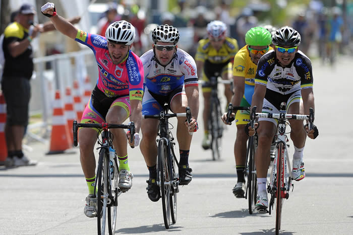 Rodrigo comemoraCrédito: Ivan StortiEmoção do começo ao fim. O 28º Torneio de Verão de Ciclismo teve uma das decisões mais acirradas de todas as suas edições. Para ter uma ideia, três ciclistas terminaram a classificação geral com a mesma pontuação e um quarto, apenas um ponto atrás. Com a vitória na 4ª e última etapa, realizada neste domingo (23), em Peruíbe, o goiano Rodrigo Araújo de Mello, da equipe CJ Bike/ Castle Eventos/ Elias Sport Uniformes/ Muscle Training, sagrou-se o campeão da elite masculina.