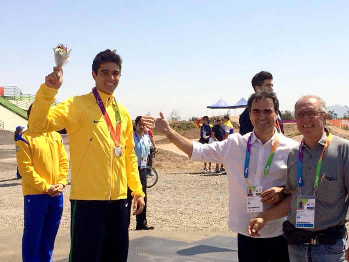 Renato recebe a premiação do presidente VasconcellosCrédito: CBC/DivulgaçãoPela primeira vez em toda a sua história, o ciclismo BMX conquista uma medalha de prata em Jogos Sul-Americanos. O feito aconteceu neste sábado (8), após Renato Rezende terminar a prova contra-relógio (Time Trial) na segunda colocação. A jovem Thaynara Morosini também foi destaque e ficou com a quinta colocação no feminino.“Atualmente a nossa equipe se encontra em um nível que nunca tínhamos alcançado anteriormente. Os projetos da CBC voltados para o BMX fizeram essa renovação e os resultados são consequência de todo esse trabalho. Hoje já podemos contar com atletas de nível mundial. O “Renatinho” fez uma prova fantástica, mas infelizmente por poucos centésimos não conseguimos o ouro. A Thaynara também fez bonito, e apesar da pouca idade, pedalou de igual pra igual contra as adversárias e também quase foi pódio. Todos estão de parabéns, foi um dia muito positivo para o Brasil”, declarou Guilherme Pussieldi, técnico da Seleção Brasileira de Ciclismo BMX.O campeão do Time Trial no masculino foi o colombiano Carlos Zabala, medalhista de bronze em Londres 2012, que completou o percurso com 33s403. Renato Rezende terminou em segundo, cravando 33s487. O brasileiro viu a medalha de ouro escapar das suas mãos por apenas 84 centésimos. Na terceira colocação terminou o argentino Matias Montenegro, fazendo 33s786. O Brasil ainda teve Miguel Dixini disputando a prova e finalizando com a quinta colocação (33s975).“É emocionante poder alcançar um resultado inédito tão expressivo como esse para o Brasil. Apesar de querer muito a medalha de ouro, consegui escrever meu nome na história e estou muito feliz com a prata. Amanhã teremos mais uma oportunidade para conquistar o ouro e toda a equipe estará dando o melhor para representar a seleção”, destacou Renato Rezende.Além do excelente resultado na categoria masculina, Thaynara Morosini, de apenas 19 anos, também deixou a sua marca na história ao conquistar o melhor resultado do Brasil na prova feminina. Thaynara fez 40s572 para completar a volta e ficou com a quinta posição. A medalha de ouro foi para a atual campeã olímpica, Mariana Pajon, da Colômbia, completando a prova em 36s934. Gabriela Diaz, da argentina, terminou em segundo, e Stefany Hernandez, da Venezuela, completou o pódio. A brasileira Bianca Quinalha concluiu na décima colocação.O piloto Renato Rezende recebeu a premiação das mãos do presidente da Confederação Brasileira de Ciclismo (CBC) e membro da Comissão Internacional de Ciclismo BMX na UCI, José Luiz Vasconcellos, que fez questão de destacar o crescimento da modalidade e o talento dos atletas brasileiros. "O BMX é uma das disciplinas que mais evoluiu mundialmente nos últimos tempos. Estamos investindo e trabalhando com vários projetos direcionados ao BMX que vão alavancar ainda mais a disciplina no Brasil. Os atletas são talentosos e estão de parabéns pelos resultados neste primeiro dia de competições", concluiu Vasconcellos.Agora os pilotos do BMX voltam a competir neste domingo (9), onde terão mais uma chance de medalha. Desta vez os atletas iniciam a prova participando de três baterias classificatórias através de uma disputa em grupo. Os primeiros colocados se classificam para as etapas finais da competição que seguem o mesmo padrão eliminatório até definir os grandes campeões na grande final.