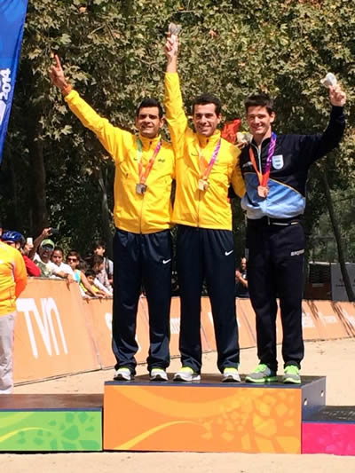 Pódio masculinoCrédito: DivulgaçãoO ciclismo brasileiro esta mostrando que não foi ao Chile a passeio. Neste sábado, 15 de março, a equipe de Mountain Bike deu um verdadeiro show na pista de Santiago e fez a festa no pódio. Os ciclistas conquistaram três medalhas, sendo um ouro com Henrique Avancini e duas pratas com Rubens Donizete e Raiza Goulão. Agora o ciclismo já soma onze medalhas nos Jogos Sul-Americanos e reforça o potencial da modalidade para Rio 2016.