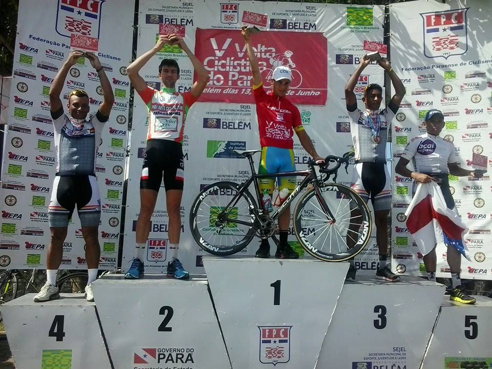 Pódio masculinoCrédito: Magaly CabralOs ciclistas enfrentaram quatro dias de competições durante a Volta Ciclística do Pará, realizada neste último fim de semana (12 a 15 de junho), em Belém. Comemorando a sua quinta edição, a competição que é válida pelo ranking nacional reuniu cerca de 120 ciclistas de doze estados na disputa pelo título. Os vencedores da elite foram Joel Candido e Janildes Fernandes.
