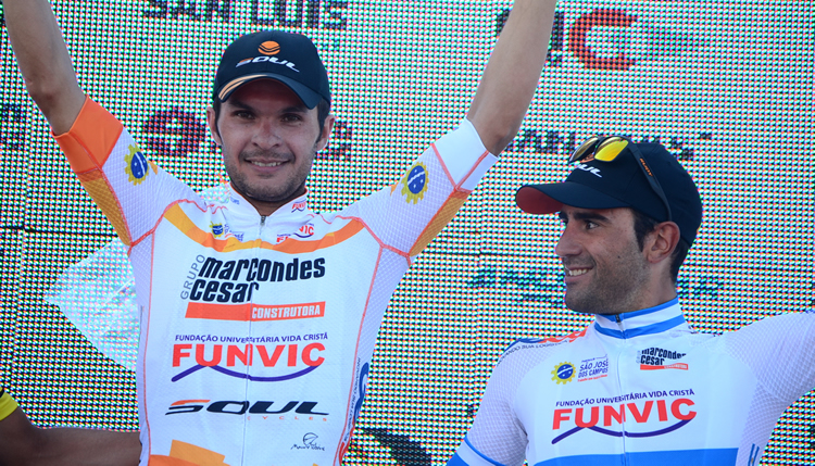 Kleber Ramos e Daniel DiazCrédito: Luis ClaudioE na sexta e penúltima etapa do Tour de San Luis de Ciclismo, realizada nesta sexta-feira (24), quem comandou a festa, mais uma vez, foi a equipe brasileira Funvic/São José dos Campos. Na etapa rainha da competição, que teve um percurso de 117,5 km de extensão, o sabor da vitória ficou com o brasileiro Kleber Ramos da Silva, o Bozó.