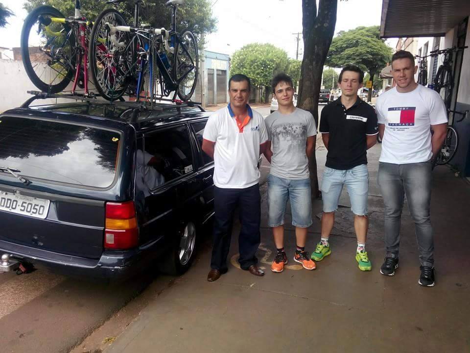 Imagem dos atletas poucos minutos antes da viagemDa esquerda para a direita: Claudinei, André, Fernando e GustavoCrédito: DivulgaçãoASSESSORIA DE IMPRENSACONFEDERAÇÃO BRASILEIRA DE CICLISMO