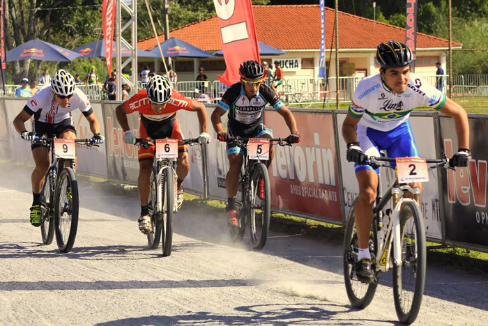 Bateria final do masculinoCrédito: Bruno Fernandes/Nois PedalaA mineira Erika Gramiscelli (Funvic Soul) e o paulista Luiz Henrique Cocuzzi (Lar/Scott/Shimano) foram os vencedores do Eliminator (XCE) neste sábado (16), prova que abriu o dia de competições da segunda etapa da Copa Internacional Levorin de Mountain Bike, em São João del-Rei. Com o título, ambos somaram 10 pontos nos rankings olímpico e mundial da UCI (União Ciclística Internacional). Neste domingo (17), os destaques são a etapa da UCI Juniors Series, ao meio-dia, e as largadas da super elite do Cross Country, a partir das 14h, valendo pontos para os rankings mundial e olímpico.