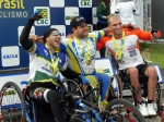 Pódio da Handbike H4MCrédito: DivulgaçãoA disputa da categoria C5 masculino, formada pelos principais nomes do paraciclismo brasileiro, também foi agitada do início ao fim. No Contra-Relógio, vitória para Lauro Chaman, da Memorial/Santos, que percorreu os 19,6 quilômetros em 24min30s, fazendo uma incrível média de 47,9 km/h. O campeão da prova de resistência na C5 foi Soelito Gohr, também da Memorial/Santos. Ambos os atletas fazem parte da Seleção Brasileira de Paraciclismo.