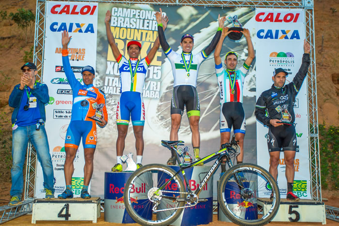 Pódio Elite masculinoCrédito: Thiago Lemos/CBCPetrópolis, na região serrana do Rio de Janeiro, amanheceu neste domingo (19) com uma temperatura amena, mas não demorou muito o clima foi esquentando, especialmente na pista de MTB do Vale do Cuiabá, palco da disputa do Campeonato Brasileiro de MTB XCO 2015. Os melhores pilotos da modalidade levantaram o público em uma competição de alto nível, que coroou Raiza Goulão e Henrique Avancini como medalhistas de ouro na elite do MTB brasileiro. Recém-chegada de Toronto, no Canadá, após participar dos Jogos Pan-Americanos, Raiza vibrou com o tetracampeonato, sendo os três primeiros pela categoria Sub-23, e destaca que esse foi um passo importante rumo à metas mais ousadas.