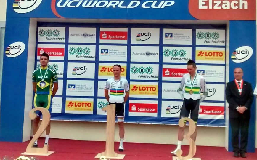 Pódio com prata para o BrasilCrédito: CBC/DivulgaçãoA Seleção Brasileira de Paraciclismo comemorou a segunda colocação alcançada neste domingo, 26 de julho, pelo atleta Lauro Chaman durante a prova de resistência da categoria Classe C5, válida pela terceira etapa da Copa do Mundo de Paraciclismo de Estrada, que foi realizada na cidade de Elzach, na Alemanha.