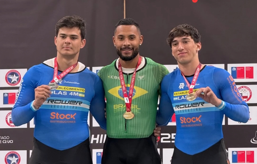 A participação do Brasil no primeiro dia da Copa Chile de Pista Internacional, válida pelo Ranking Mundial C1 da UCI, foi marcada por resultados expressivos. O grande destaque veio na Velocidade Individual, onde João Vitor confirmou o favoritismo e levou o ouro na Elite masculino. O brasileiro superou os argentinos Juan Bautista Rodríguez, prata, e Matías Roberto Murilo, bronze, confirmando o alto nível da competição e colocando a bandeira verde e amarela no lugar mais alto do pódio.