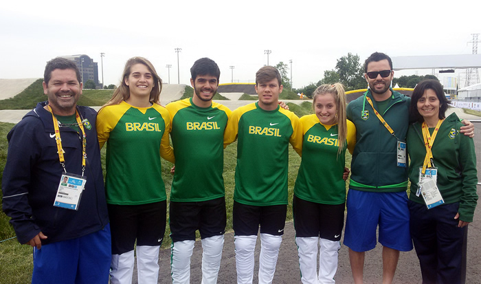 Equipe brasileira de BMXCrédito: CBC/DivulgaçãoA seleção brasileira de BMX chega mais preparada do que nunca para disputar os Jogos Pan-Americanos de Toronto/2015. Após uma temporada de treinos que incluíram as melhores estruturas do mundo na modalidade, como o CT de Chula Vista nos Estados Unidos, tudo proporcionado pelo Projeto Intercâmbio da CBC, com patrocínio da Caixa Econômica Federal, a equipe chega ao Canadá em sua melhor fase e com duas grandes chances de pódio.