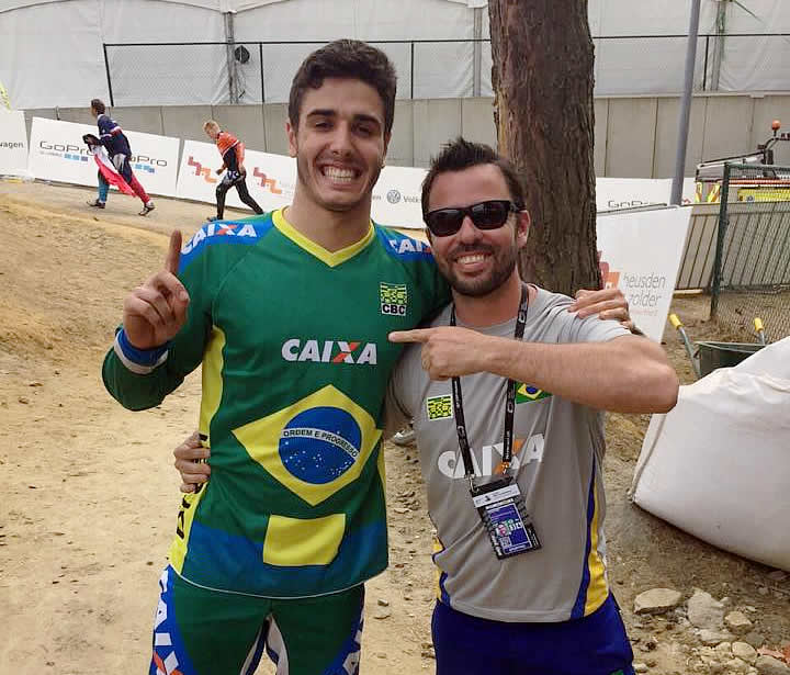Eduardo com seu técnico DanielCrédito: CBC/DivulgaçãoO mundial de BMX que está sendo disputado até sábado (25) em Heusden-Zolden, na Bélgica, começou muito bem para o Brasil. Na pista de BMX montada dentro do autódromo de Zolder, Eduardo Rezende, irmão de Renato Rezende, sexto colocado no ranking mundial da Elite, mostrou que o DNA da família é forte mesmo e nesta quinta-feira (23) faturou o título da categoria Cruiser 17-24 (Aro 24) na disputa da Challenge.